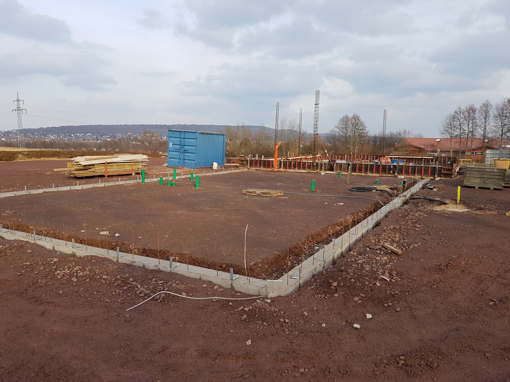 Die Baumaßnahmen am Feuerwehrgerätehaus wurden nur kurz von der Kaltfront ausgebremst. Die Tiefbauarbeiten sind fertiggestellt und der Hochbau hat begonnen.