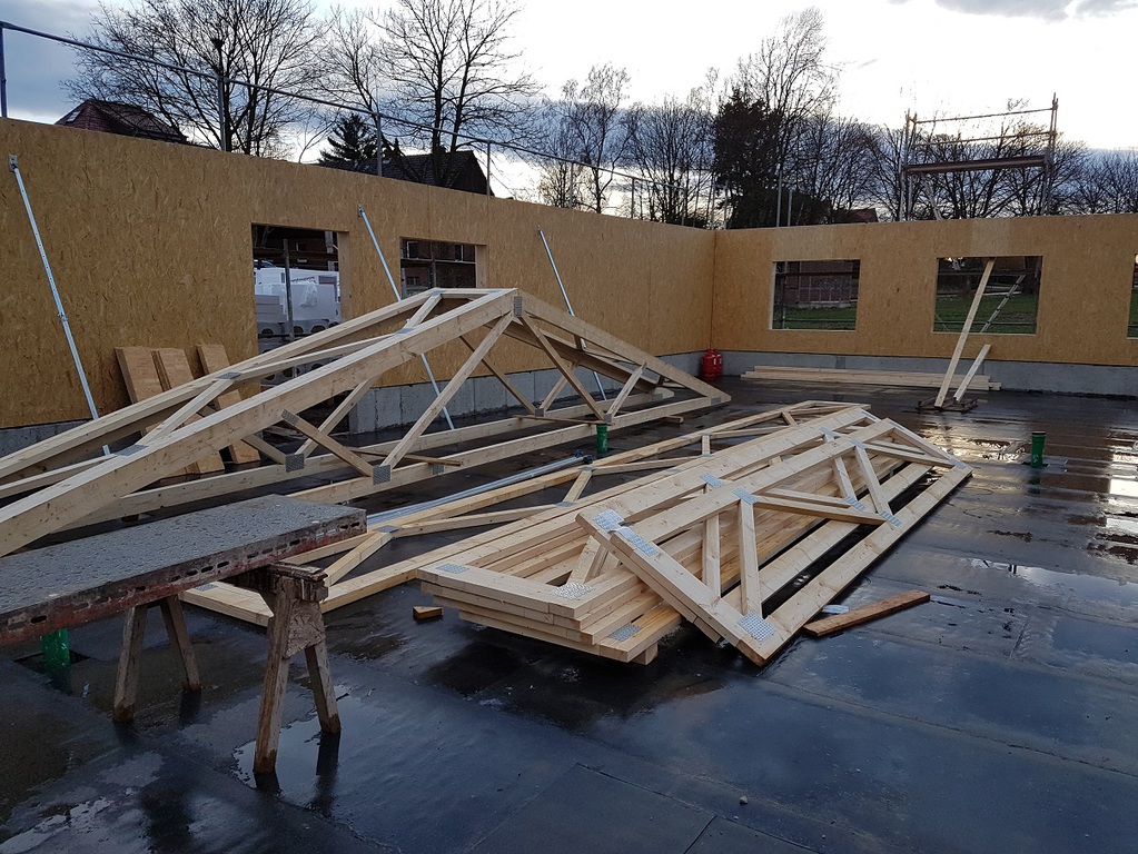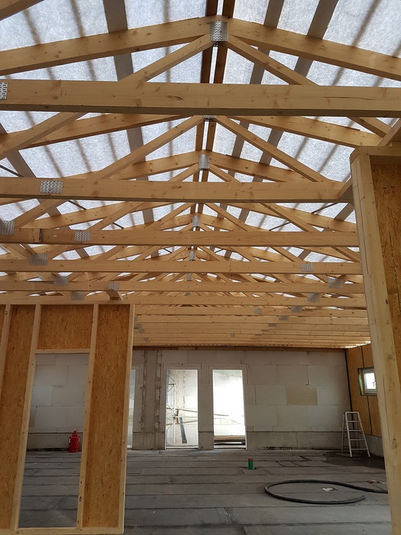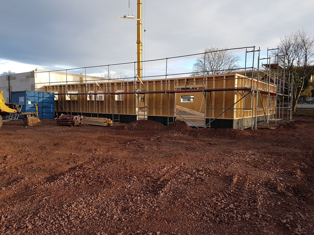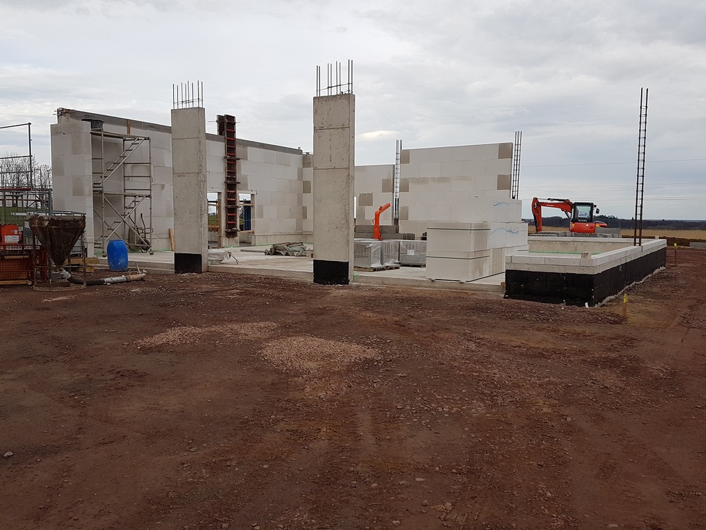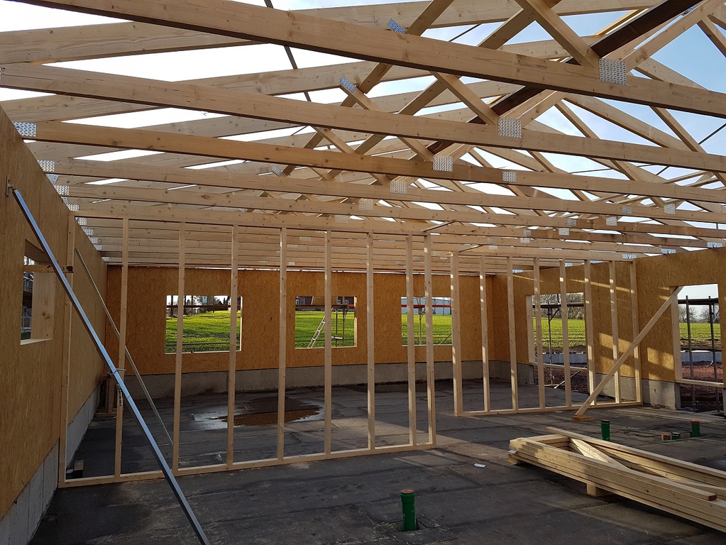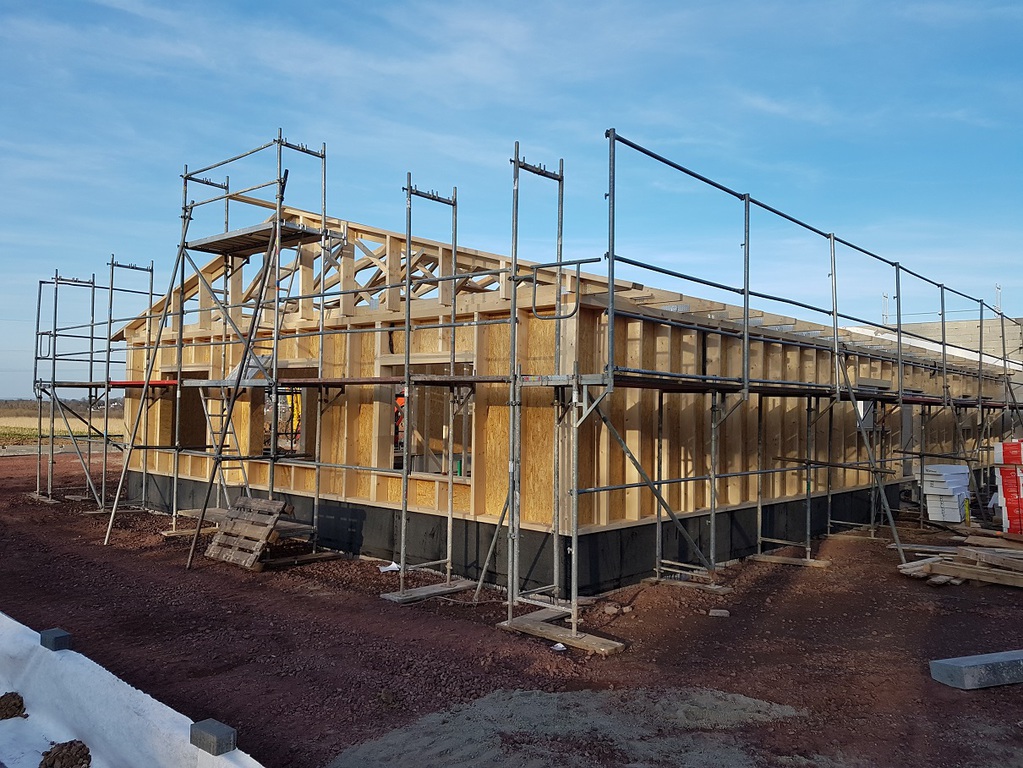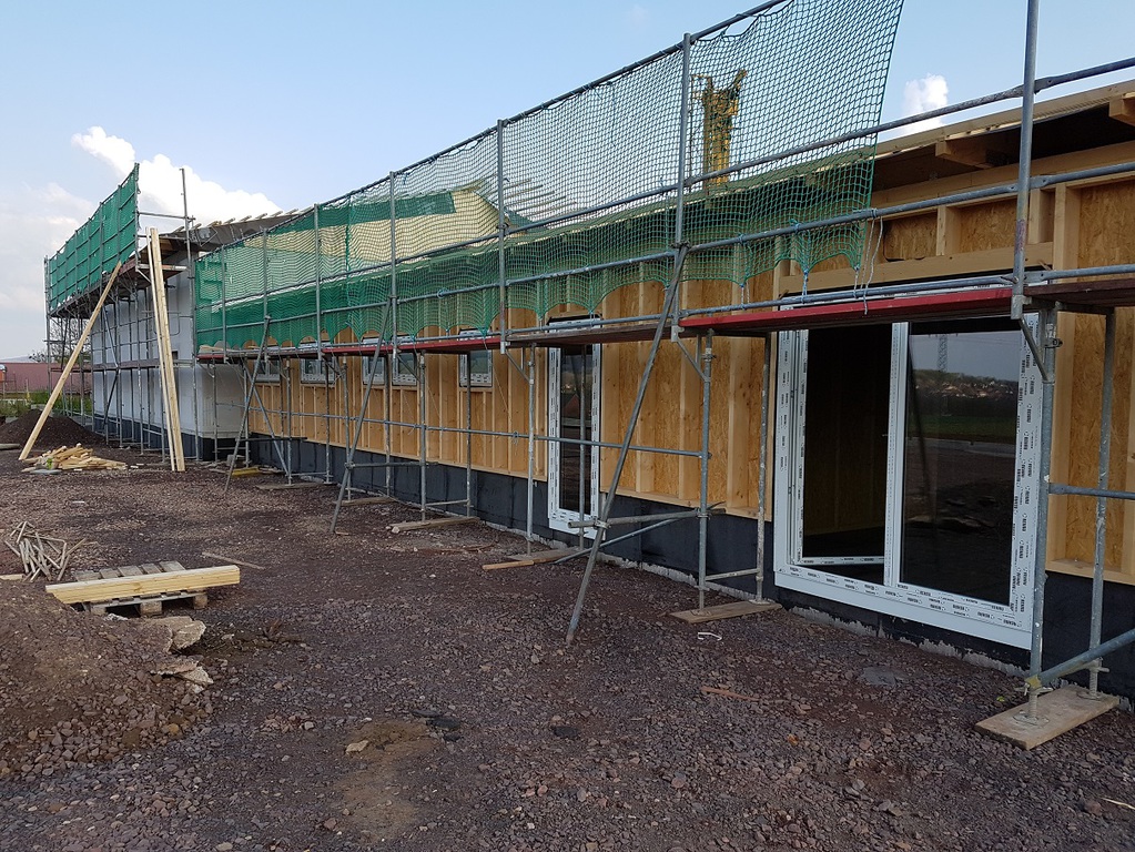 Wände wurden gestellt, der Dachstuhl wurde errichtet, Fenster und Türen wurden eingebaut, die Gebäudedämmung und der Innenausbau läuft auf Hochtouren.