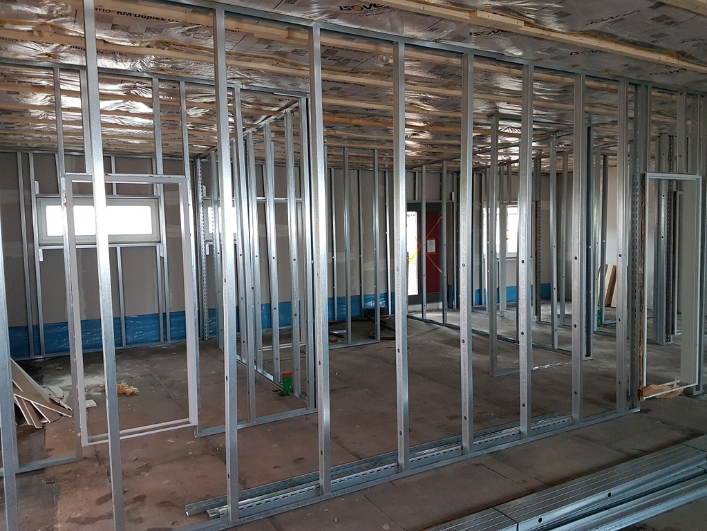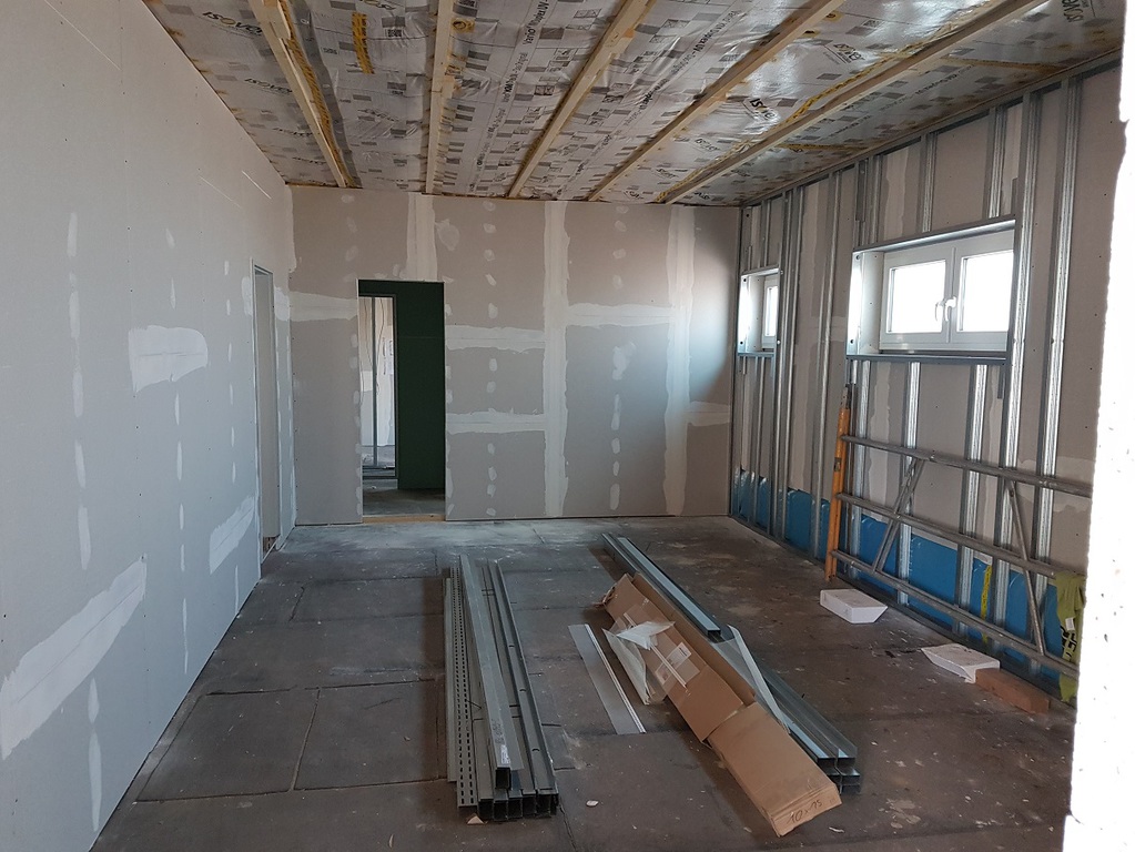 Weitere Wände im inneren wurden gestellt und mit Rigips verkleidet.