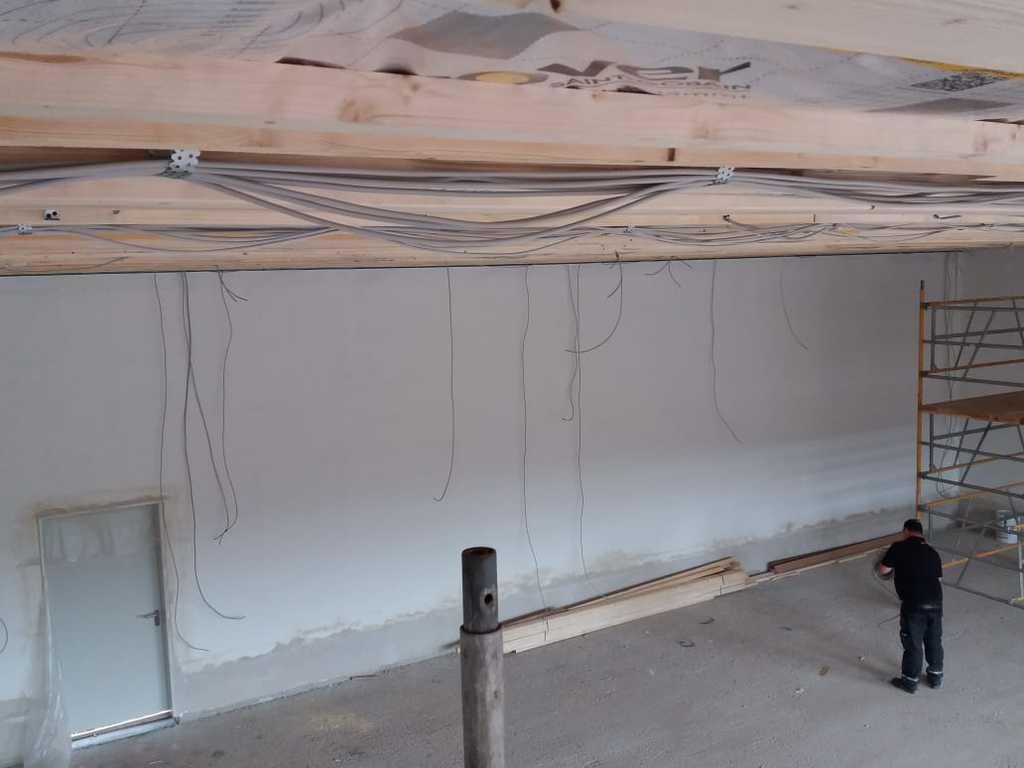 Die zukünftige Fahrzeughalle hat den ersten Anstrich bekommen und den Elektriker haben wir beim Strippen ziehen unterstützt.